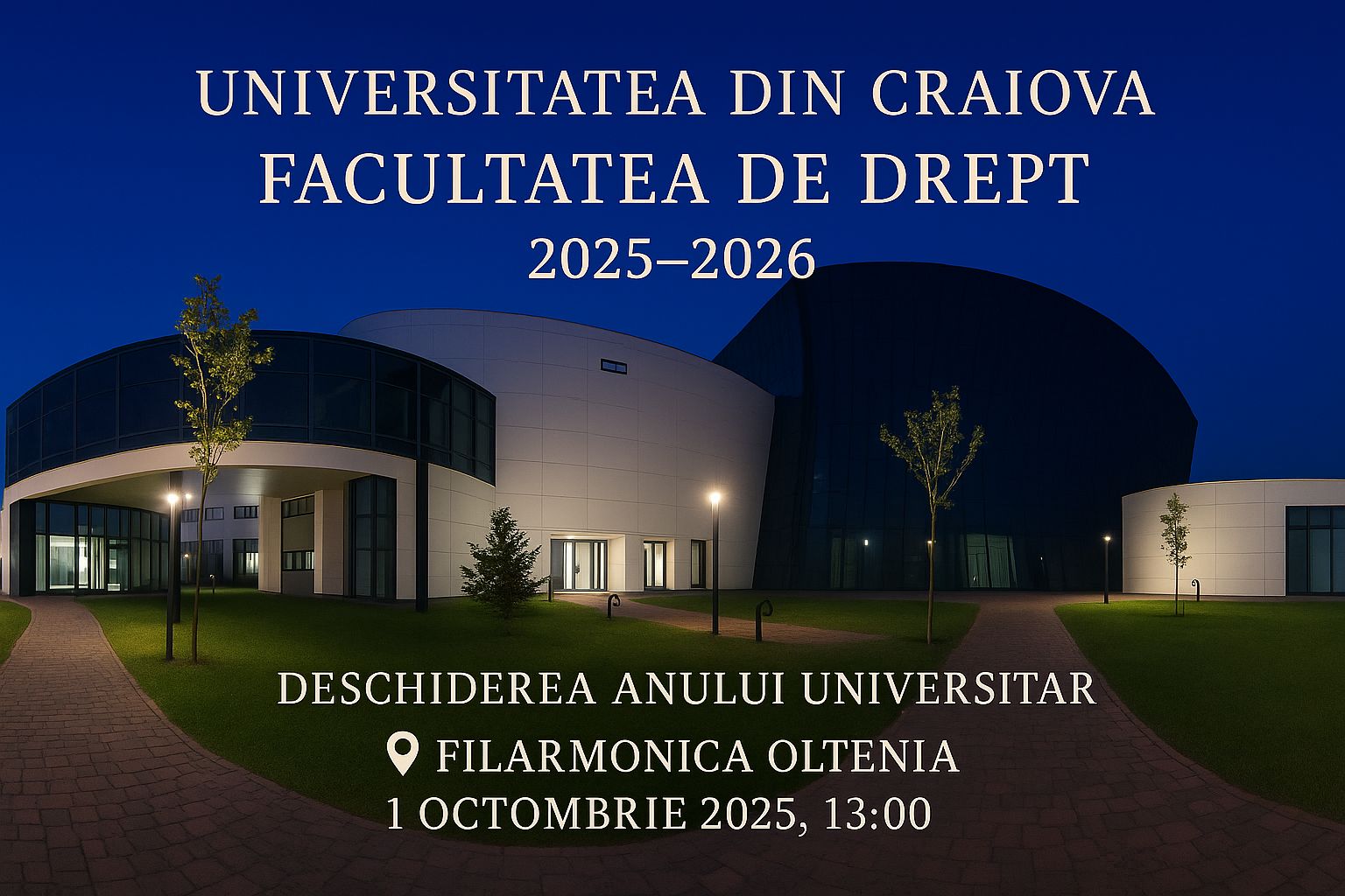 Studenții anului I de la programul de studii de licență sunt invitați la deschiderea noului an universitar, Miercuri 1 octombrie 2025, ora 13.00 la Filarmonica Oltenia”.