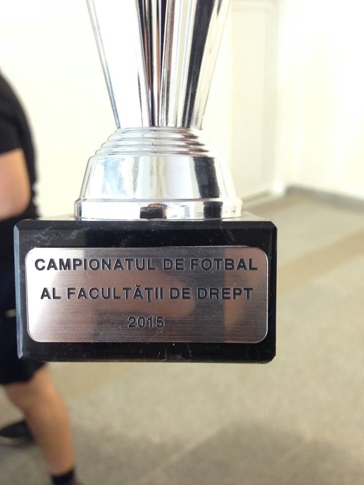 Echipa de fotbal a Facultatii de Drept a reprezentat anul acesta Craiova la Campionatul National de fotbal al Uniunii Nationale a Studentilor din Romania , reusind sa si castige competitia . Este pentru prima data cand ajunge cupa in Banie ! Felicitari echipei !